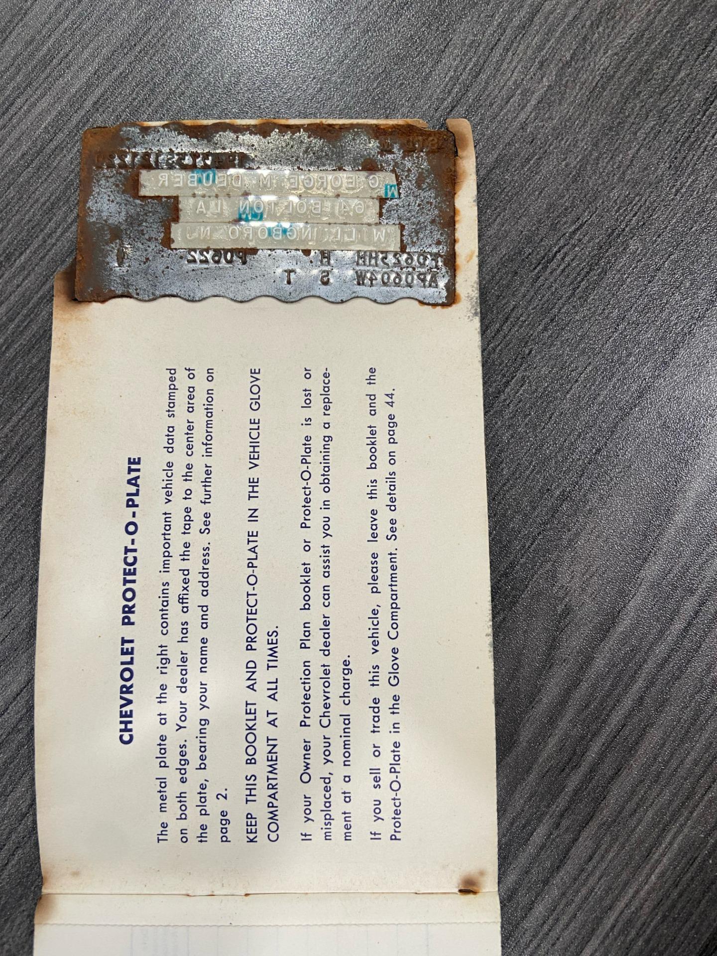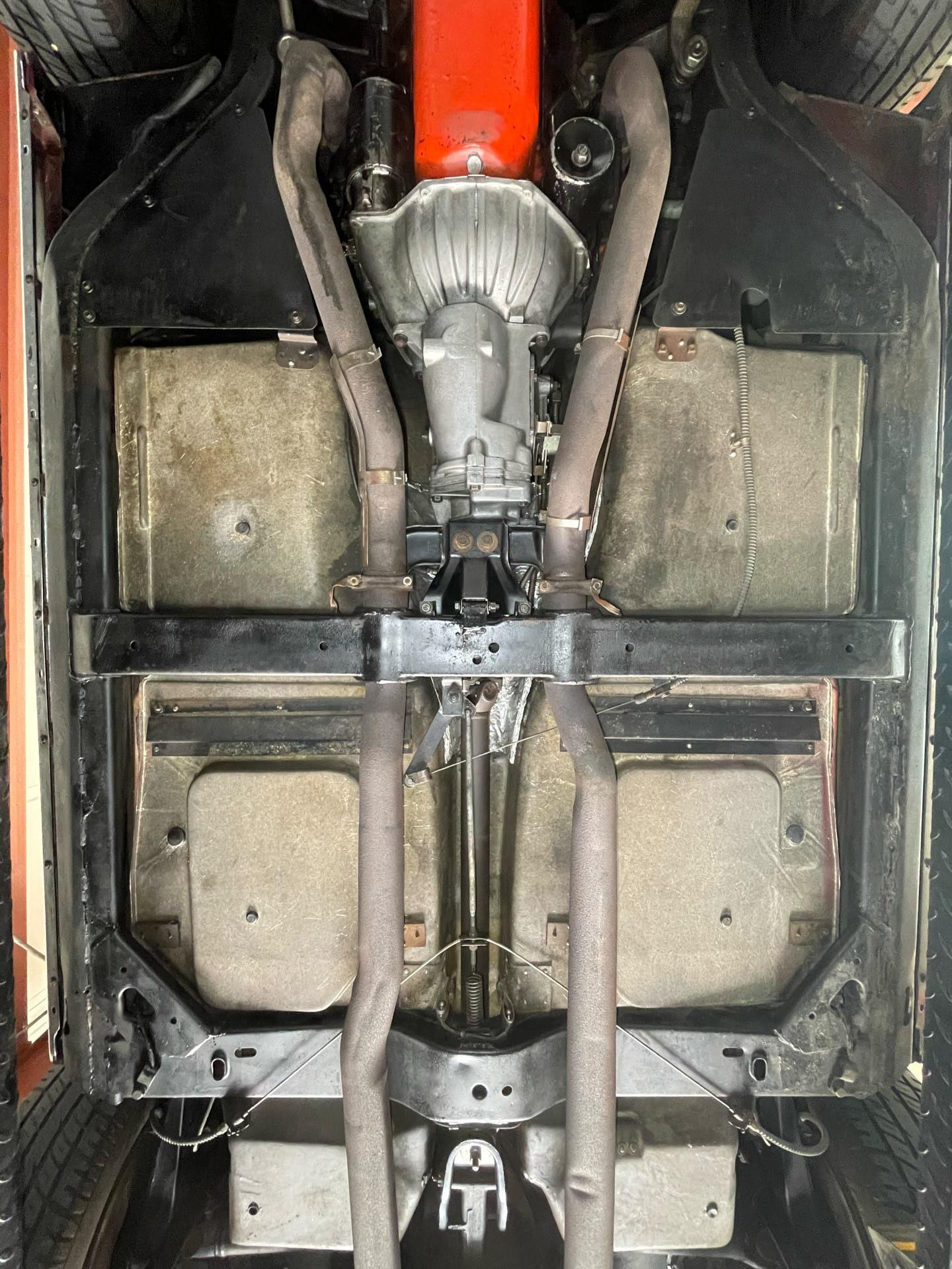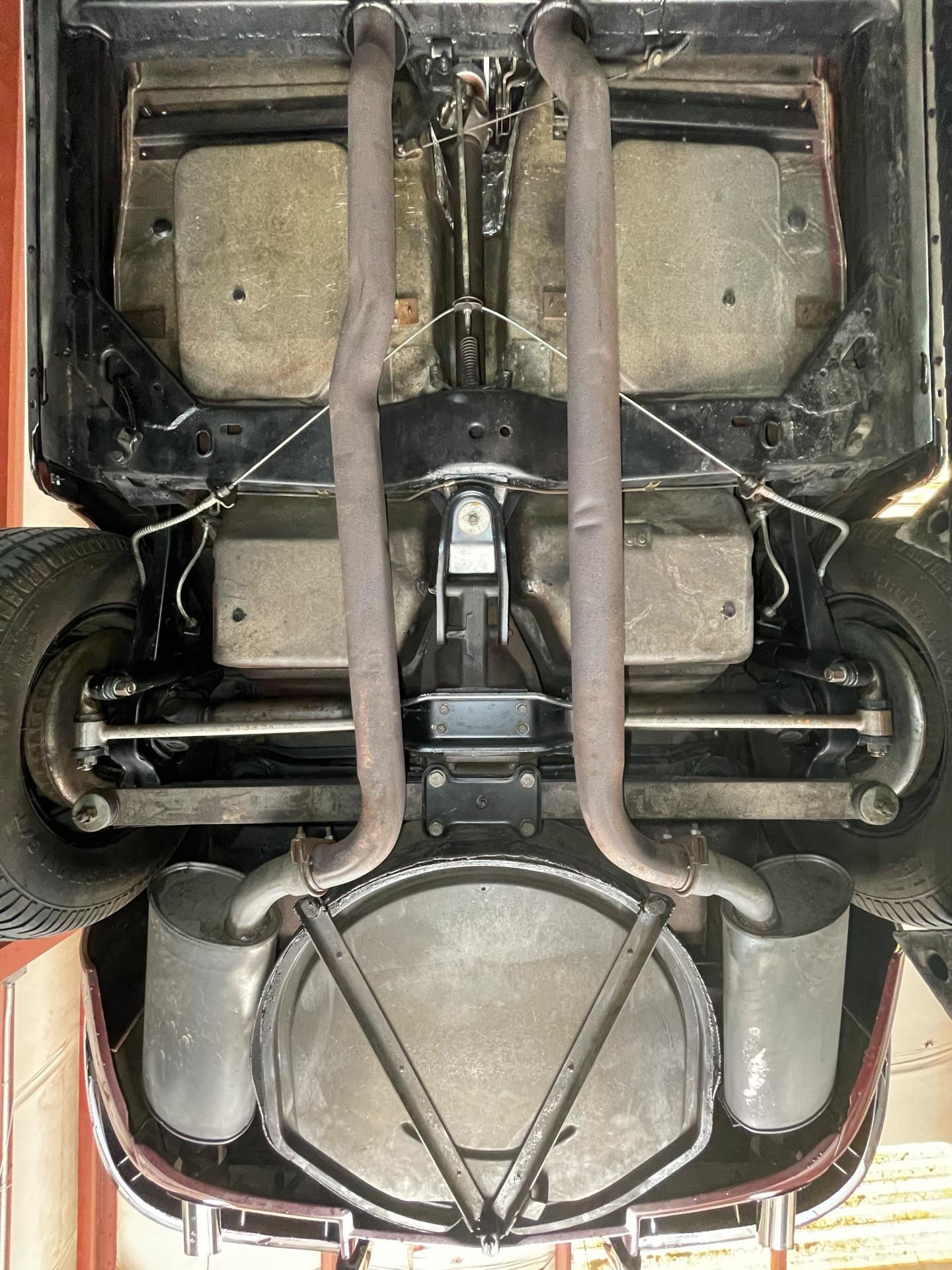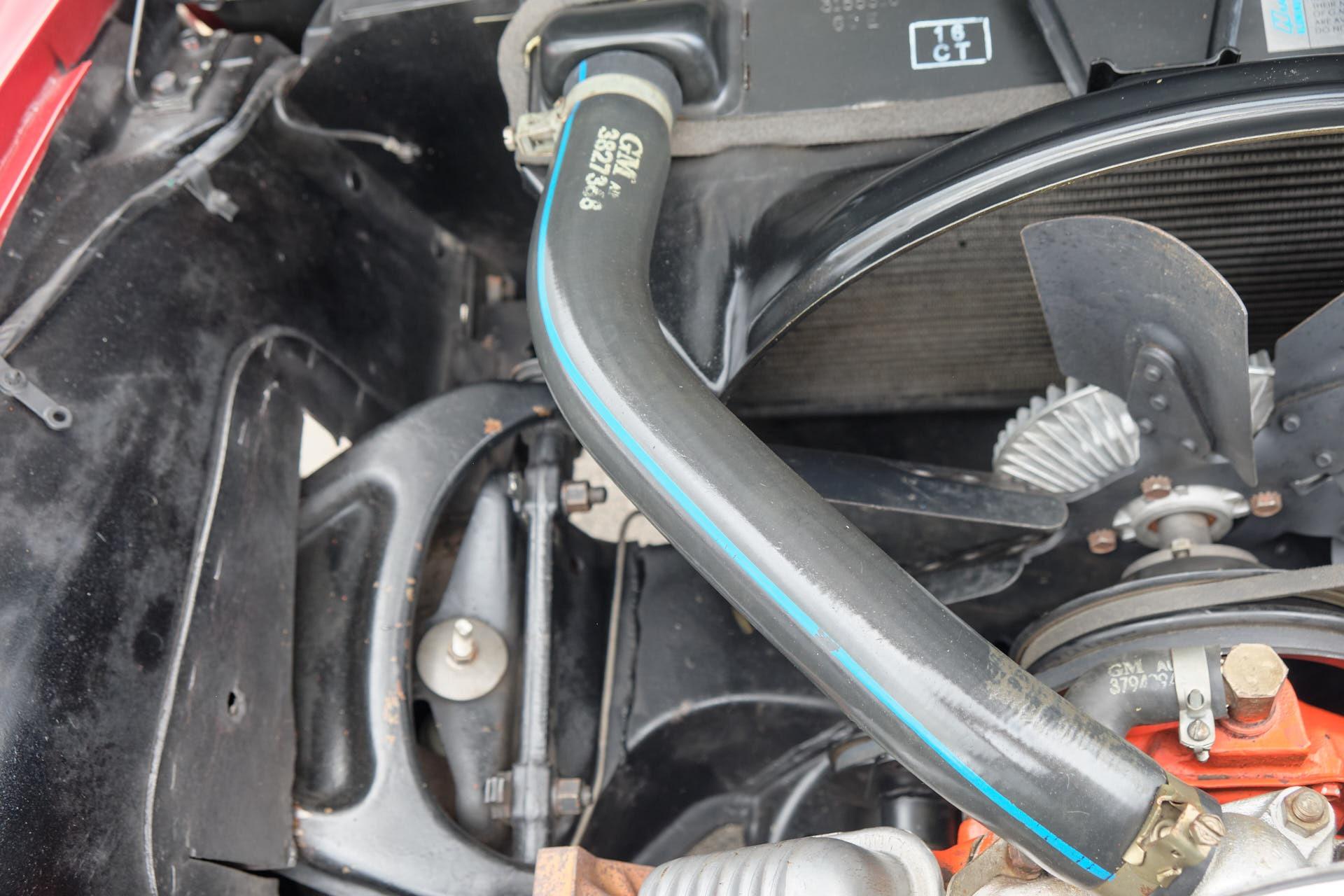tinted windshieldlocking gas capleather seatsgarage keptoriginal bumpers rechromedheadlight bucket bearingsM21 transmission rebuiltposi unit rebuiltrear control arms and spindles and parking brakes rebuiltentire dashboarddistributor including recurvingcarburetor rebuiltright manifold planed, choke tube replacedseat belt bucklesall interior trimbrushed aluminum on the consolekeys (nos blanks cut from the codes)shock absorbers all (Delco)lower ball joints (AC Delco professional grade)radiator (Dewitt's)all hoses (reproduction and all clamps correct type)water pumpidler pulley bearingfan belts (canvas wrapped debossed reproductions)fuel pump (AC 40083)fuel filtertiming chain (cloyes double roller)clutch, clutch fork, fork boot, t/o bearing, dust shield.clutch rod firewall sealvalve seals and rocker armsdistributor shaft and tach gearcoil (nos 202 unit)plug wires (Delco)rt side vertical plug wire shield (nos)drive shaft yoke, and ujointstransmission mountposi clutches, carrier and stub shaft bearings and sealsdifferential front bracket bushingdifferential mounting crossmember bushingsrear strut rodsrear spring hangers and bushingshalf shaft ujointsspindle yokes, bearings, seals, and french locksrear parking brake cablerebuild calipersrear disc pads (nors asbestos)exhaust pipe heat shieldstransmission tunnel heat shieldmufflers, (now N11 3 baffle)tailpipes (larger 68-69 units)spare tire lock and boot (keyed to glove box)scissors jack (correct reproduction)fan and clutch changed to 7 blade to improve coolingtires (215-70-15 Mickey Thompson street tires that work well on dry pavement, but not in the rain)tail and reverse light assembliesstainless tag surrounds (2)all emblems (nos)door sillsrocker panelsmirror w/dated glasswindow channelshubcapshood hinges and rear gasketwindshield wipers (nos)all weathersrtipleft door panelcarpetrear window inside trimshift bootrear view mirror (nos)horn buttonheater coreradio and heater knob trimdome light housing