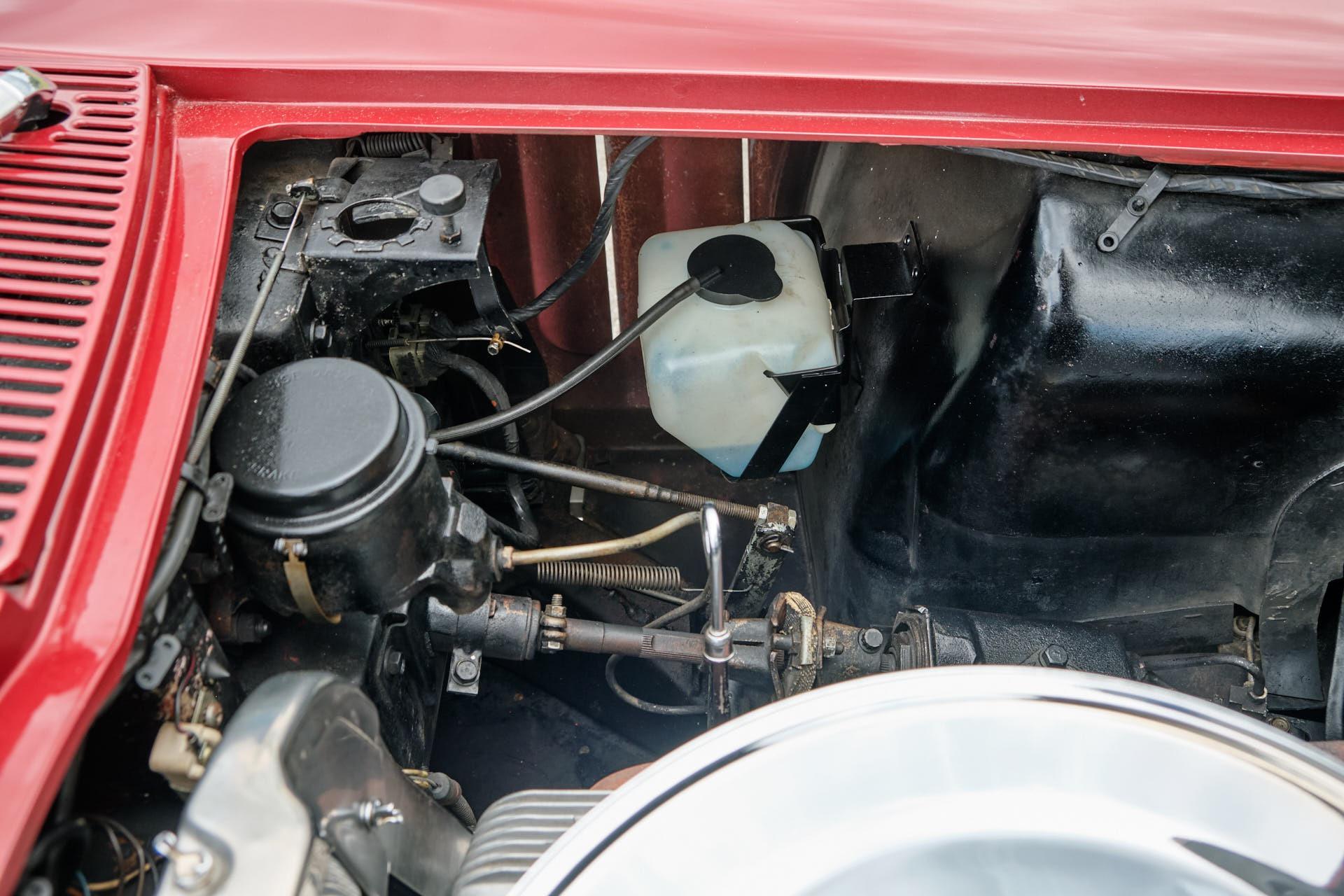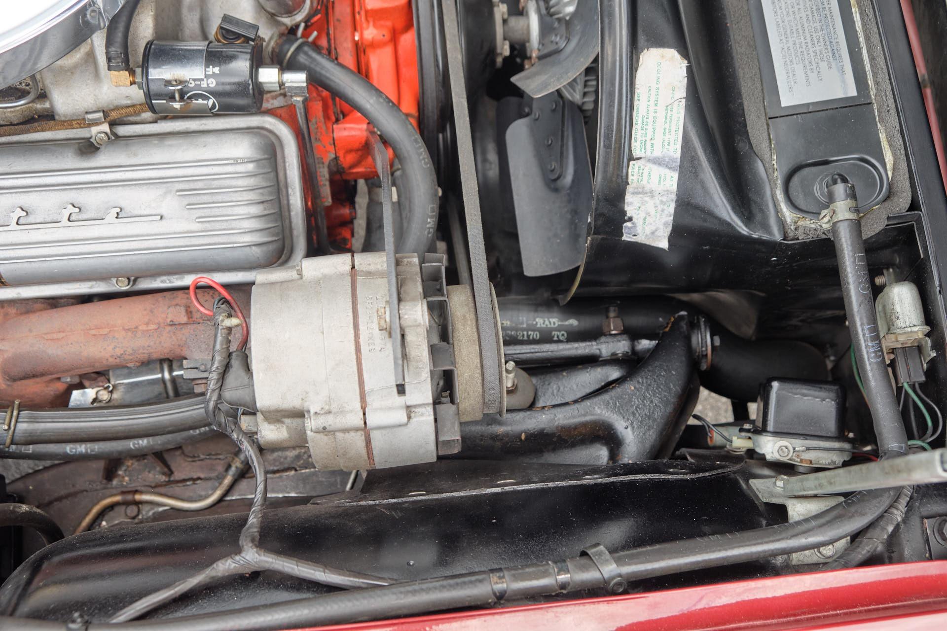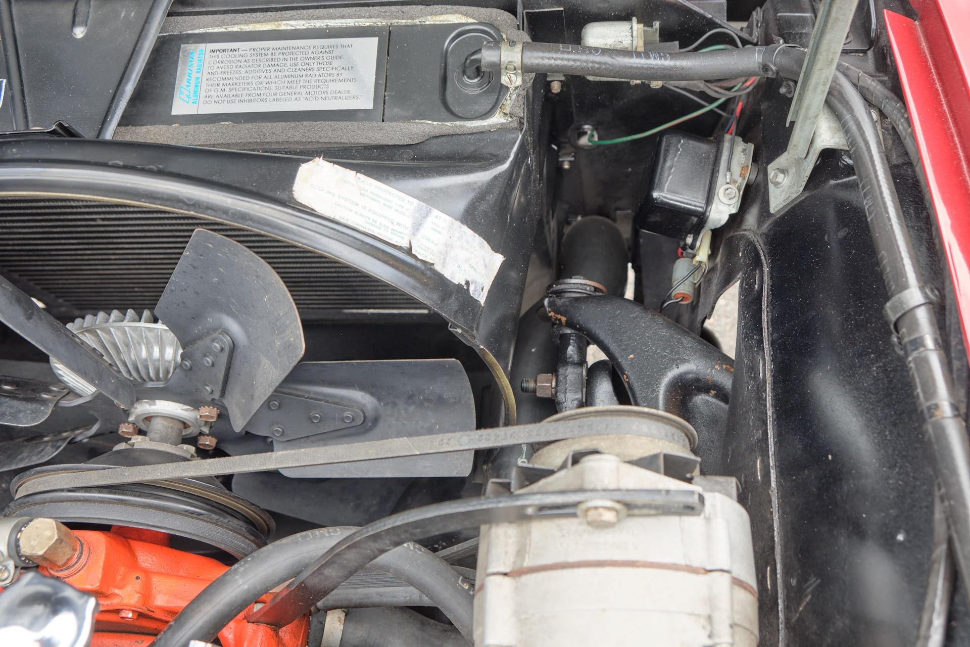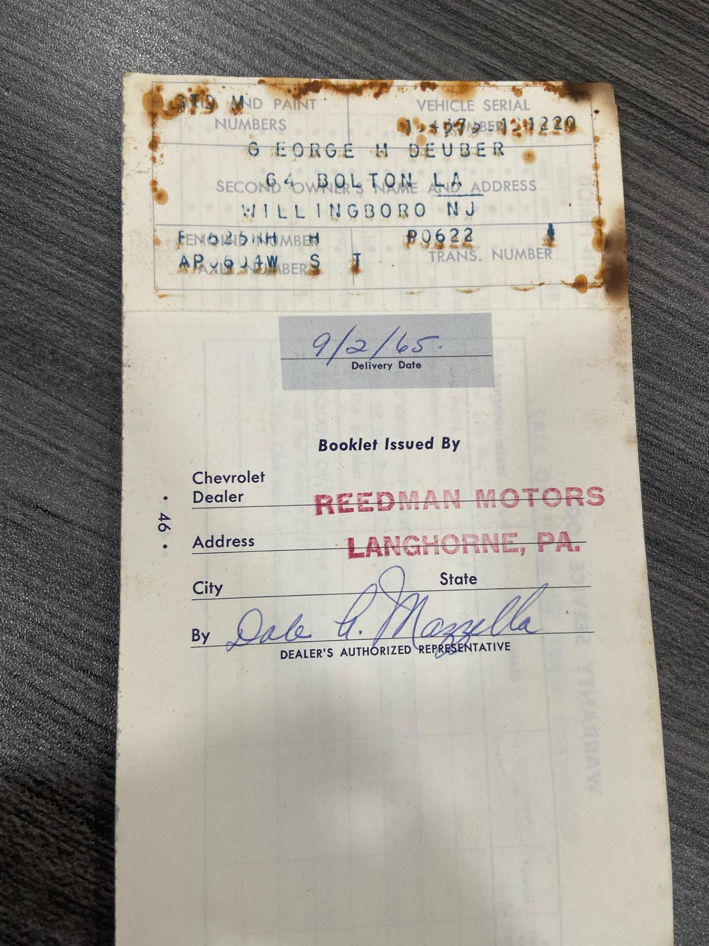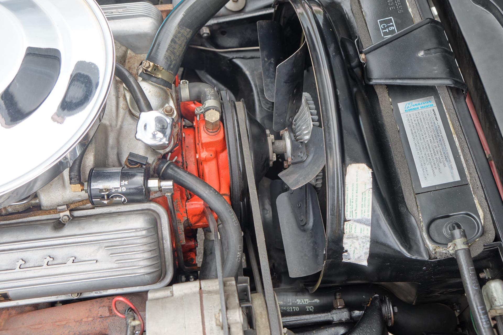 tinted windshieldlocking gas capleather seatsgarage keptoriginal bumpers rechromedheadlight bucket bearingsM21 transmission rebuiltposi unit rebuiltrear control arms and spindles and parking brakes rebuiltentire dashboarddistributor including recurvingcarburetor rebuiltright manifold planed, choke tube replacedseat belt bucklesall interior trimbrushed aluminum on the consolekeys (nos blanks cut from the codes)shock absorbers all (Delco)lower ball joints (AC Delco professional grade)radiator (Dewitt's)all hoses (reproduction and all clamps correct type)water pumpidler pulley bearingfan belts (canvas wrapped debossed reproductions)fuel pump (AC 40083)fuel filtertiming chain (cloyes double roller)clutch, clutch fork, fork boot, t/o bearing, dust shield.clutch rod firewall sealvalve seals and rocker armsdistributor shaft and tach gearcoil (nos 202 unit)plug wires (Delco)rt side vertical plug wire shield (nos)drive shaft yoke, and ujointstransmission mountposi clutches, carrier and stub shaft bearings and sealsdifferential front bracket bushingdifferential mounting crossmember bushingsrear strut rodsrear spring hangers and bushingshalf shaft ujointsspindle yokes, bearings, seals, and french locksrear parking brake cablerebuild calipersrear disc pads (nors asbestos)exhaust pipe heat shieldstransmission tunnel heat shieldmufflers, (now N11 3 baffle)tailpipes (larger 68-69 units)spare tire lock and boot (keyed to glove box)scissors jack (correct reproduction)fan and clutch changed to 7 blade to improve coolingtires (215-70-15 Mickey Thompson street tires that work well on dry pavement, but not in the rain)tail and reverse light assembliesstainless tag surrounds (2)all emblems (nos)door sillsrocker panelsmirror w/dated glasswindow channelshubcapshood hinges and rear gasketwindshield wipers (nos)all weathersrtipleft door panelcarpetrear window inside trimshift bootrear view mirror (nos)horn buttonheater coreradio and heater knob trimdome light housing