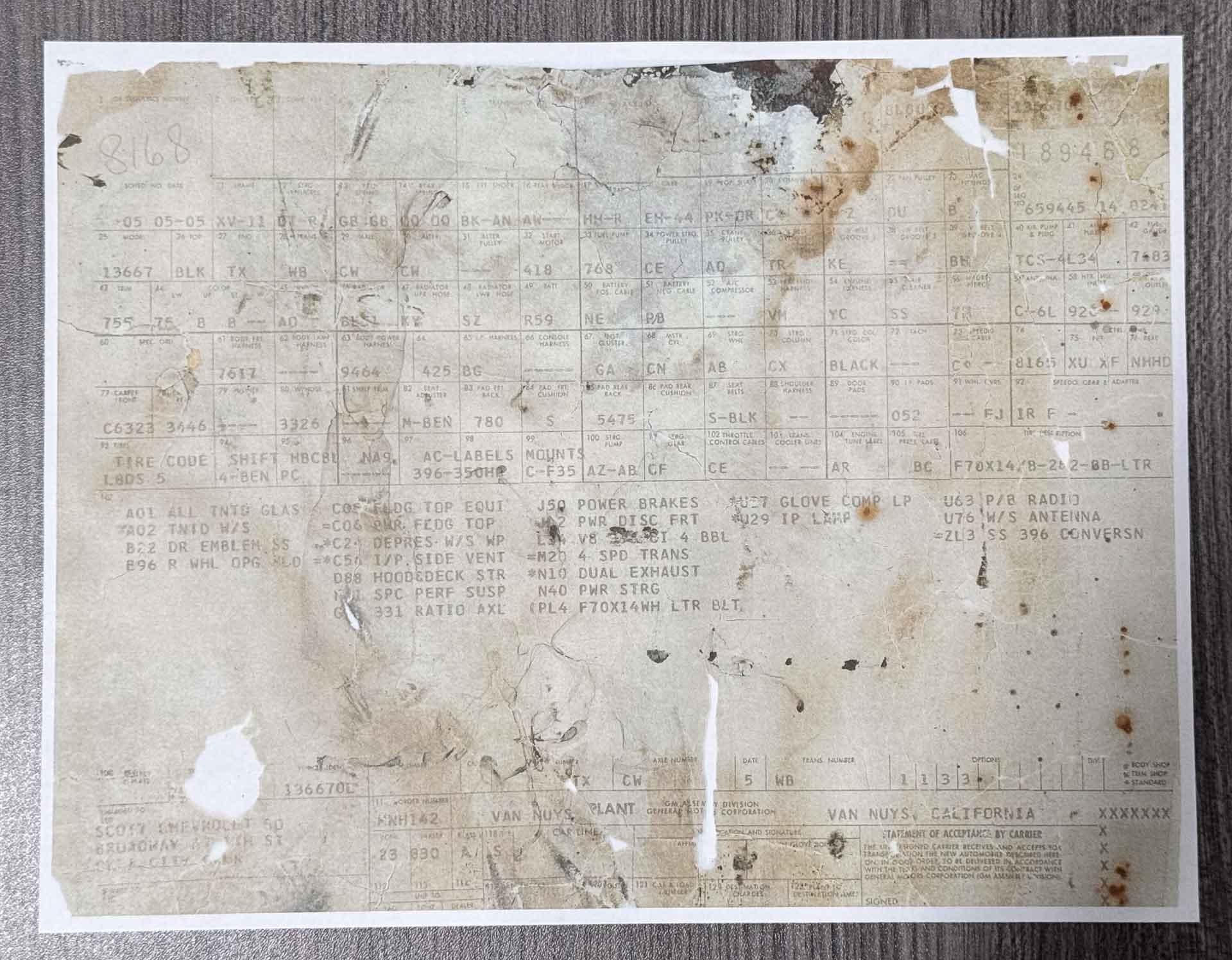 Convertible, Matching Numbers and Build Sheet