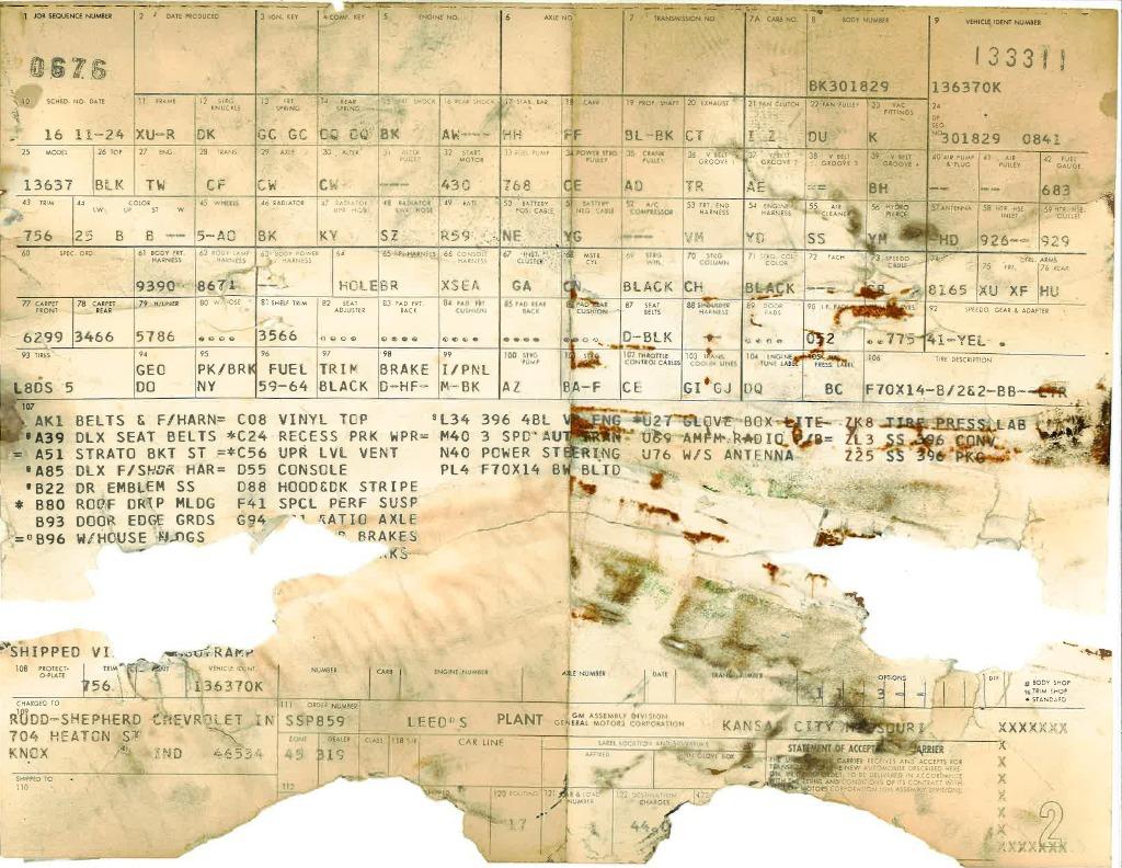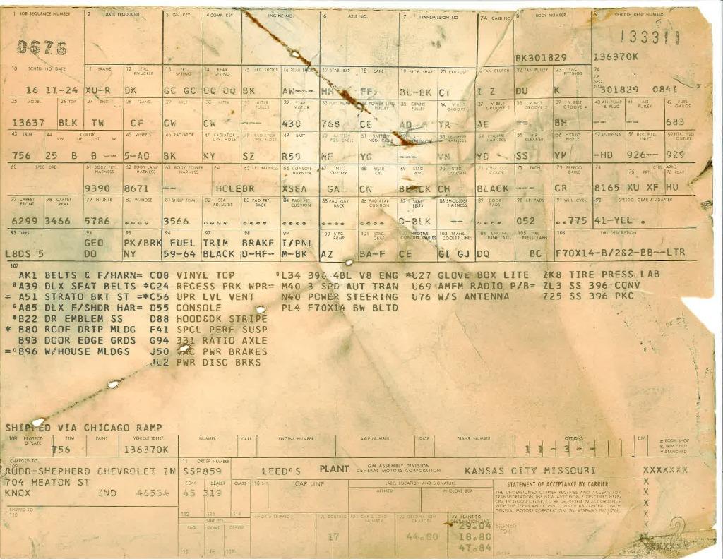 396 Big Block, Air Conditioning, 2 Build Sheets
